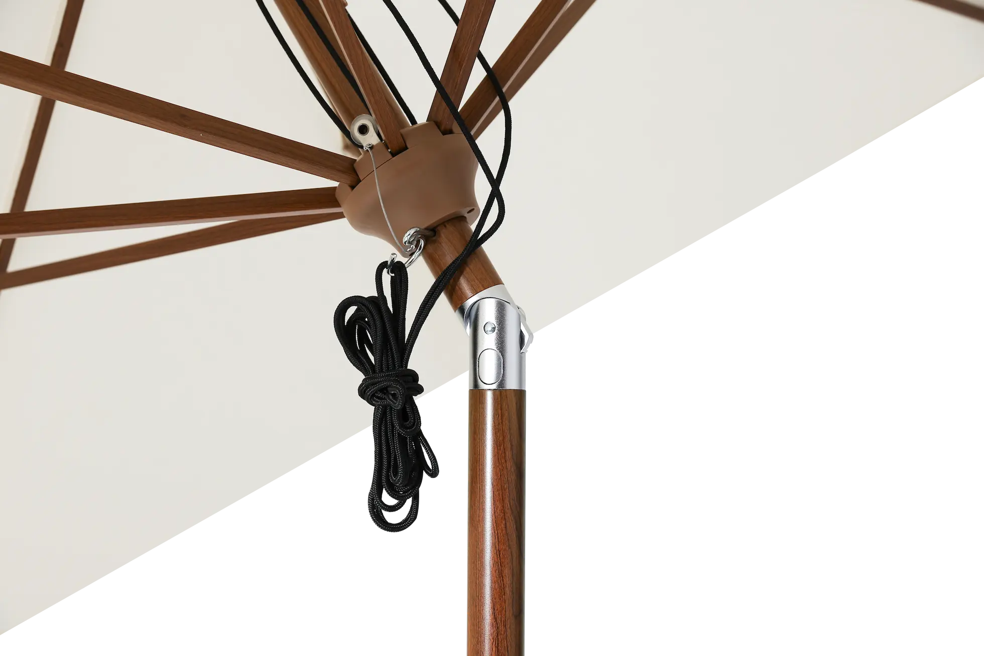 After hundreds of iterative experiments, we’ve achieved a faux wood effect that closely resembles real wood. This umbrella, with its lifelike appearance and tactile feel, offers a sustainable alternative to protect our forests from logging. Plus, tilting function is optional with a better strengthness than real wood.