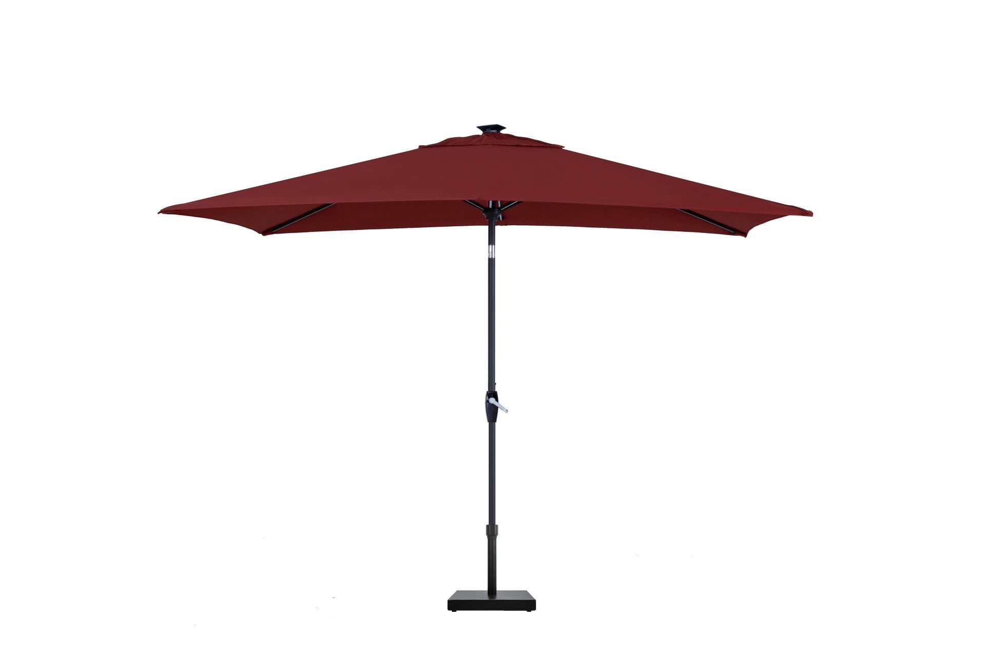 Commercial-grade market umbrella engineered with rust-free aluminum construction and integrated Aurora solar lighting system. Auto tilt mechanism provides effortless shade adjustment while solar-powered LED lights extend operational hours into evening service. Precision-crafted with Kevlar cord crank system for reliable daily operation. Ideal for restaurants, hotels, and outdoor dining facilities requiring durable shade solutions with built-in illumination.