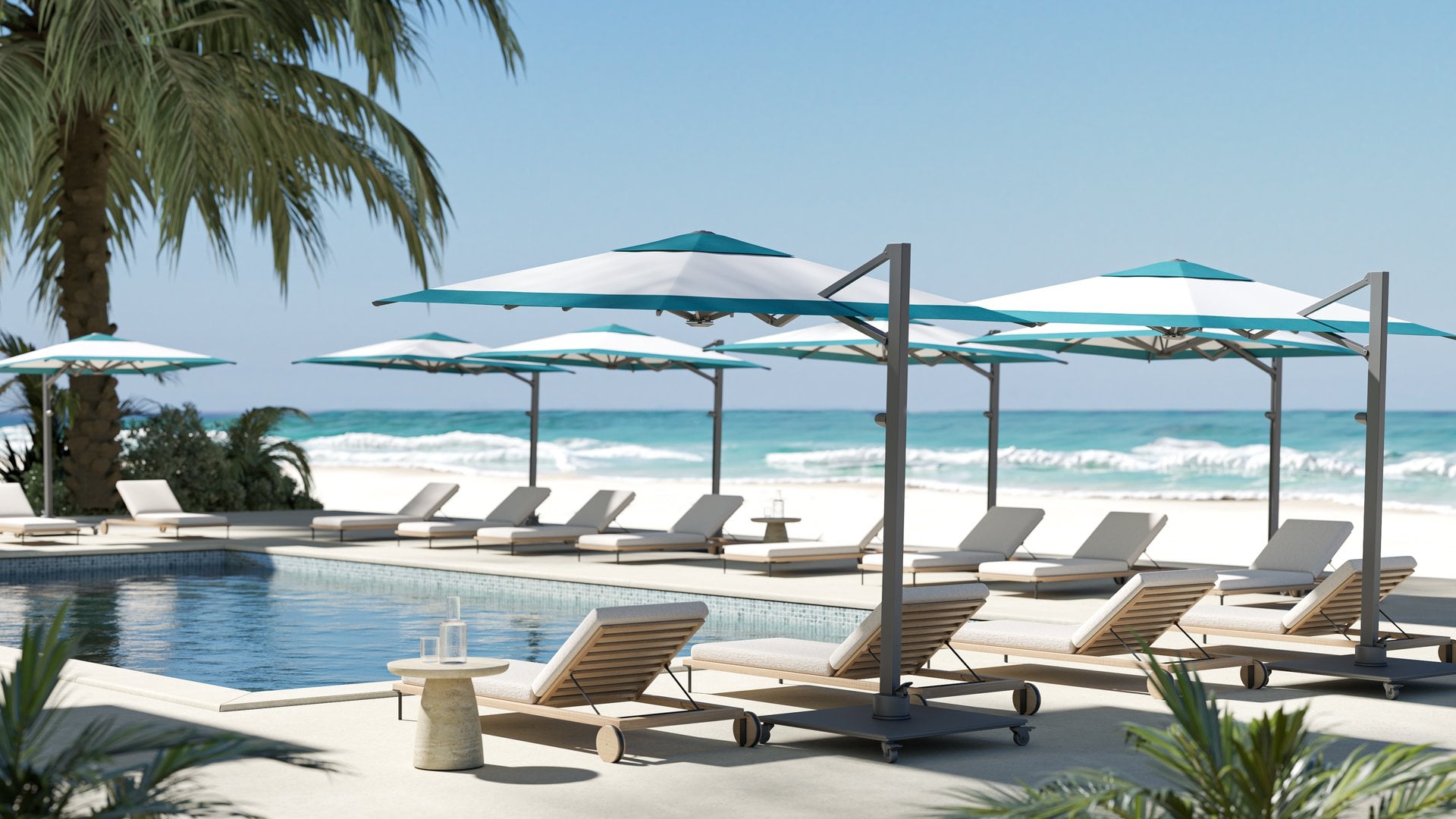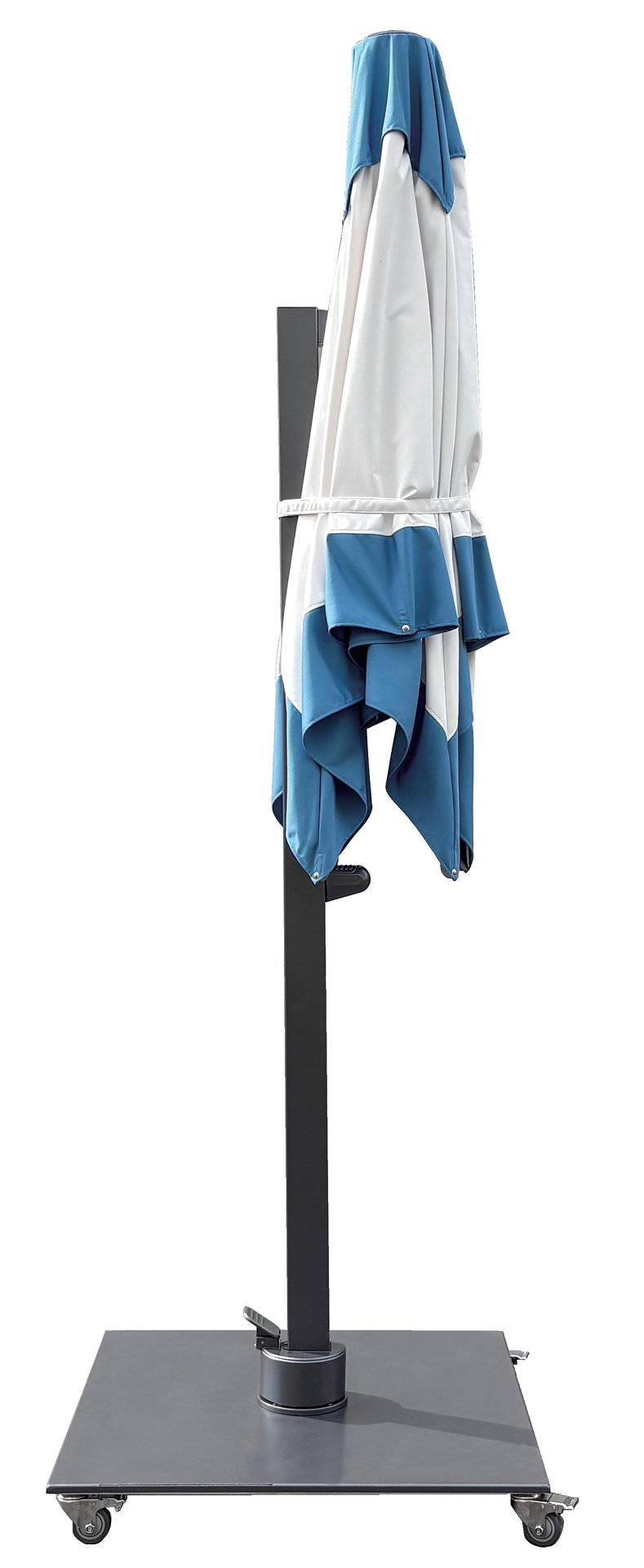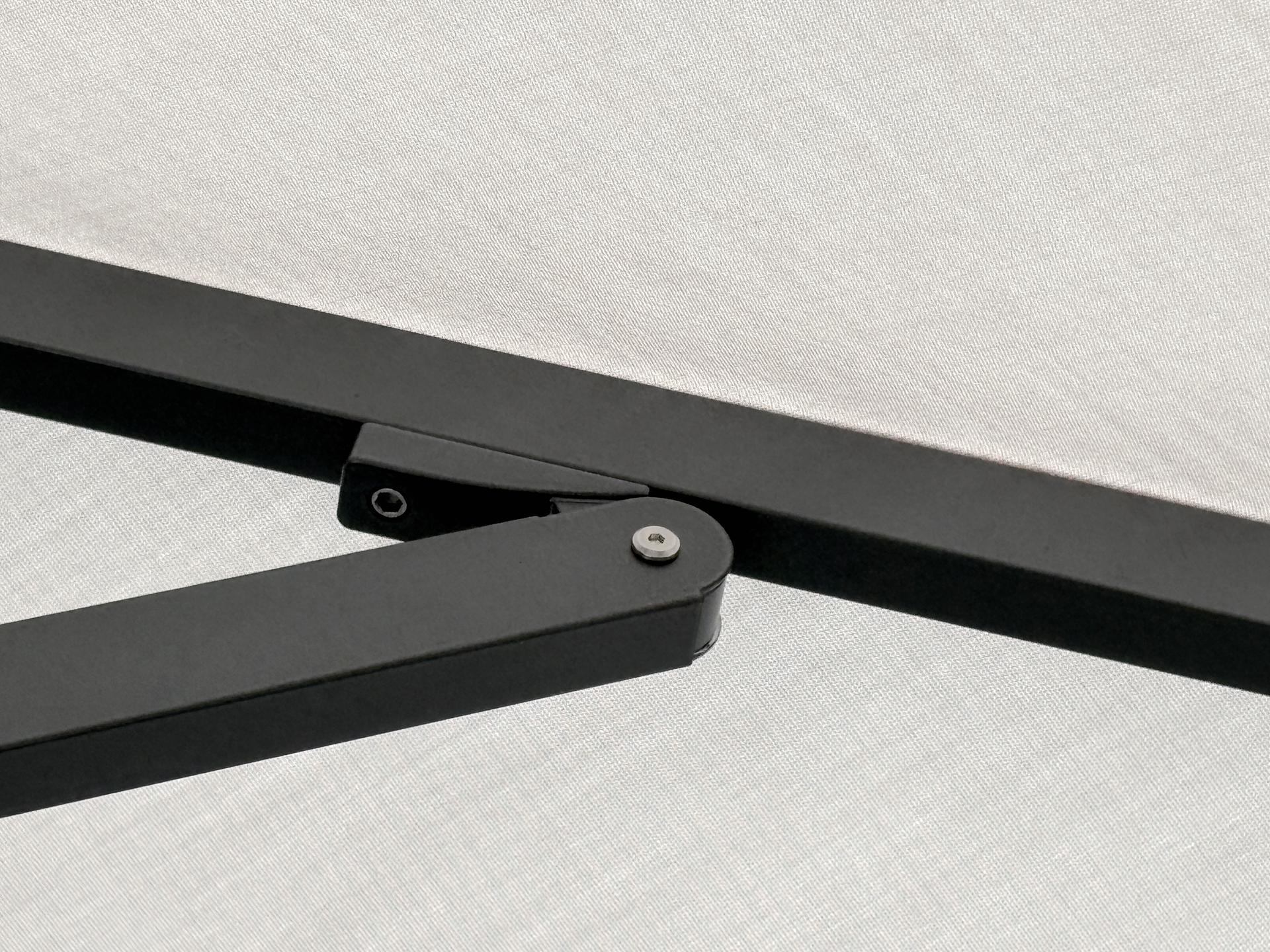 Where ancient shade engineering meets modern innovation, the V1 redefines cantilever performance. A gas-assisted mechanism delivers smooth, gliding canopy movement without cranks or complex mechanisms. The patented telescoping rib design keeps ribs elevated above table height — preserving unobstructed space below. Thickened aluminum profiles and reinforced construction ensure wind-resistant stability. Engineered for commercial environments that demand reliability without compromise.